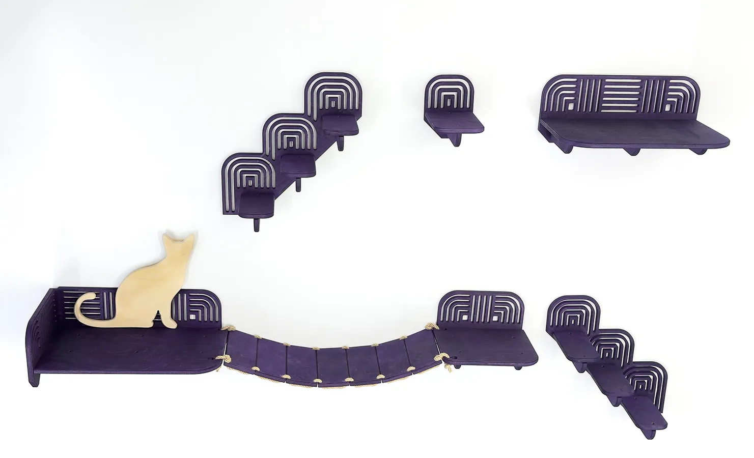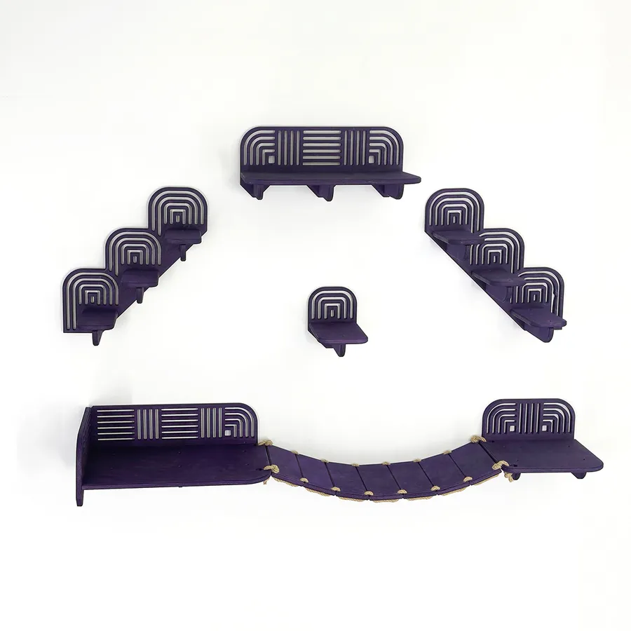 Istnieje również możliwość dokupienia dodatkowych półek w różnych rozmiarach, co pozwala na stworzenie unikalnej kociej ścieżki dopasowanej do Twojego mieszkania i potrzeb Twojego pupila.